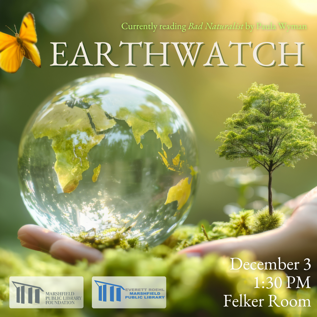 Earthwatch Wednesday, December 3 1:30 PM, Felker Room EarthWatch is a book club that is an open environmental and conservation discussion group for on-topic books. The group meets each month to discuss the book and share ideas. This month we will be reading the book Bad Naturalist by Paula Wyman, pages 165 through the end of the book. Earthwatch meets in the Felker Family Genealogy & Local History Room on the second floor.