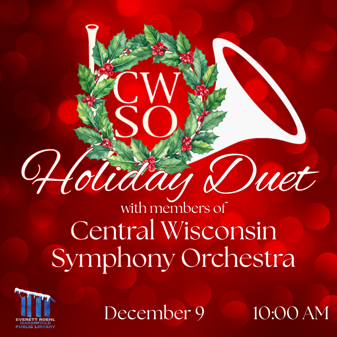 Central Wisconsin Symphony Orchestra Holiday DuetTuesday, December 9 10:00 AM, 1st Floor Join us this morning for a lovely performance of holiday music by two members of the Central Wisconsin Symphony Orchestra.