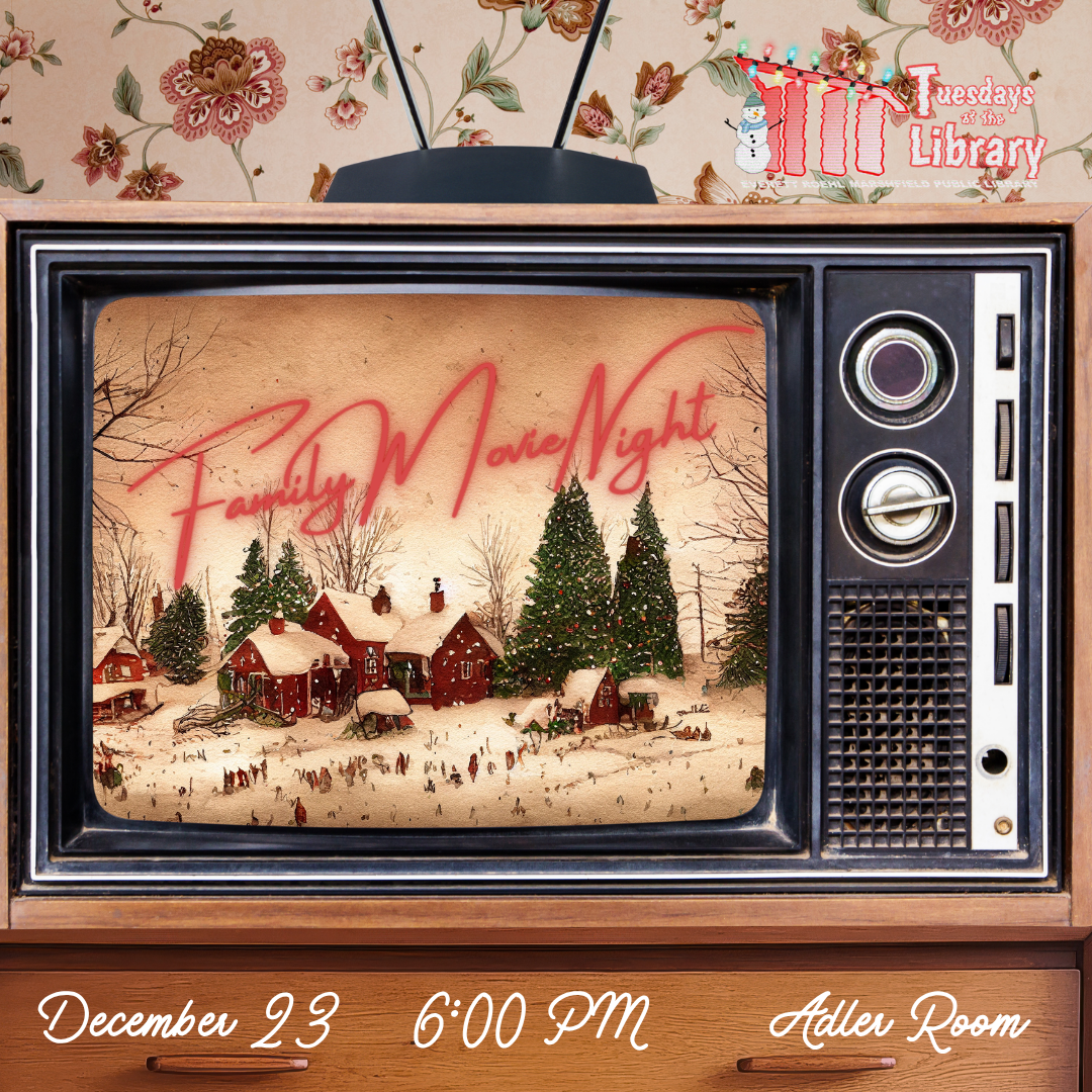 Family Movie NightTuesdays at the Library Tuesday, December 23 6:00 PM, Adler Room Join us as we watch some holiday favorites! We'll provide the popcorn!