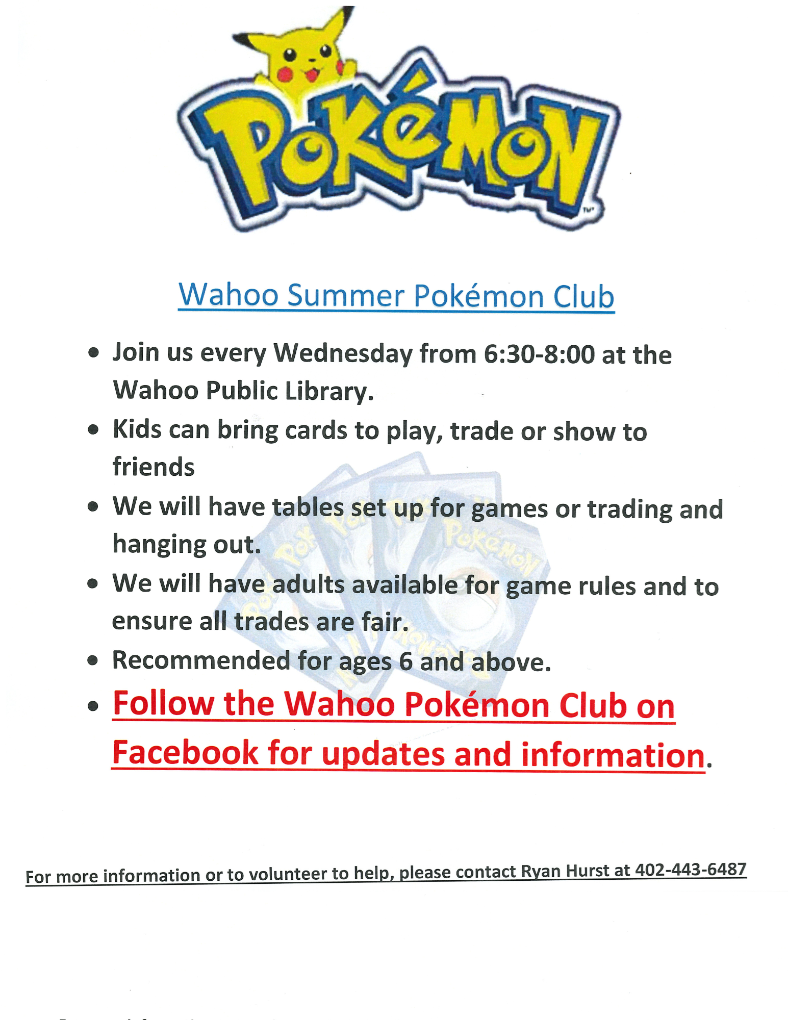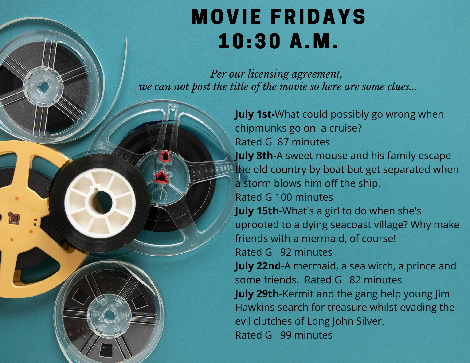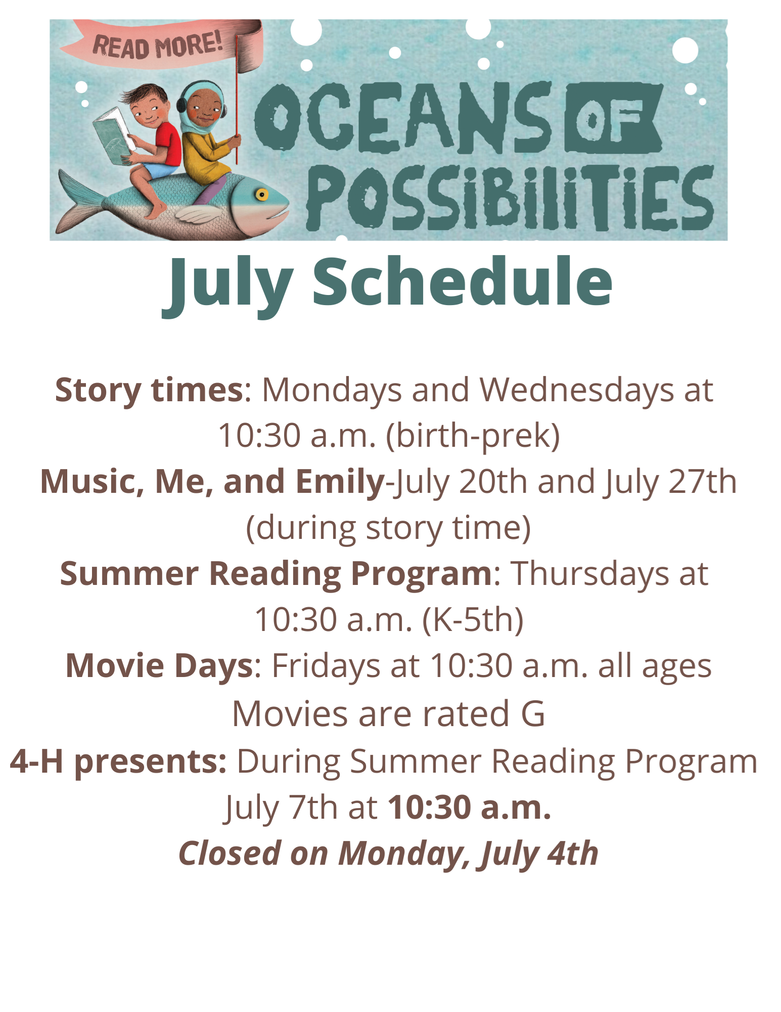 - Story Time Calendar/Summer Reading Program info