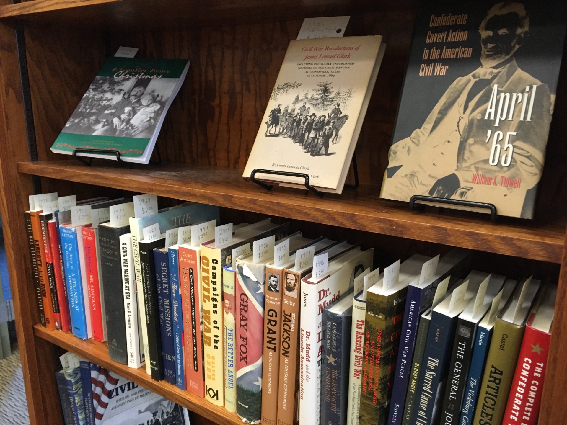 A generous donor has given the library a large collection of books on the Civil War. Over 100 books from 1889 to 2009 cover battles, generals and other significant figures, and many other topics related to this period of American history. Find them with the vintage books for sale by the circulation desk.