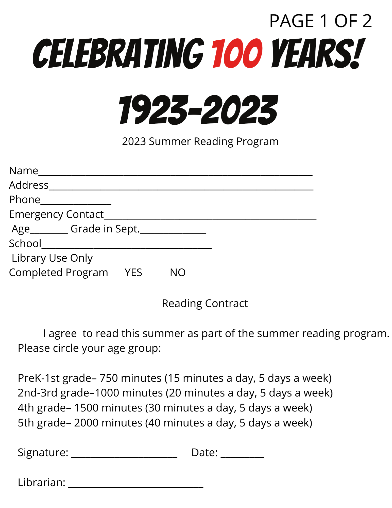STORY TIME CALENDAR/SUMMER READING PROGRAM