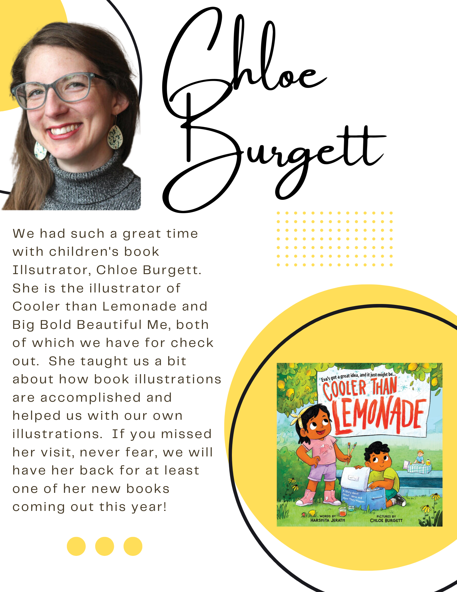 We were fortunate to have the illustrator, Chloe Burgett visit us and we love this book she read to us!