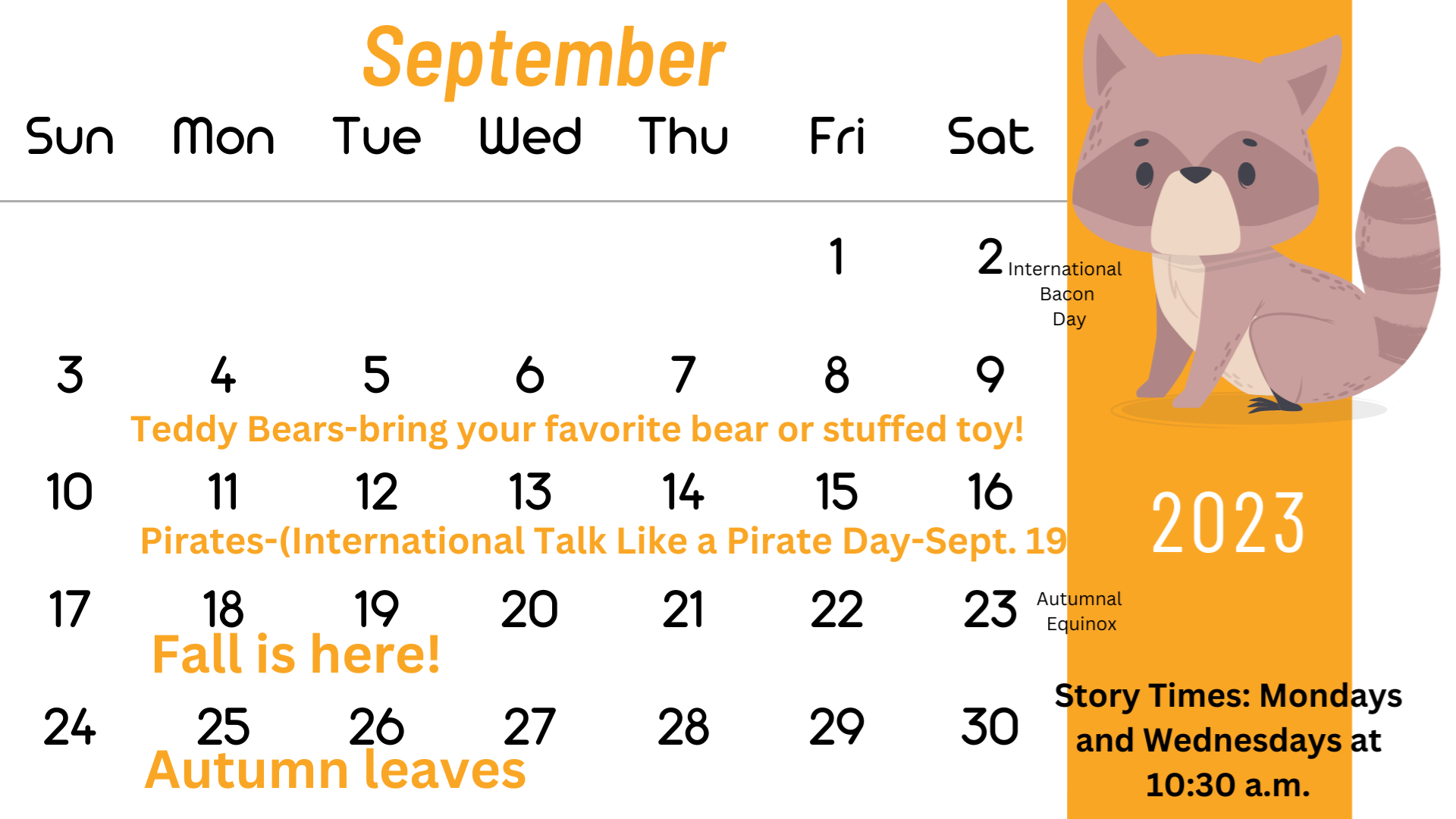 - Story Time Calendar
