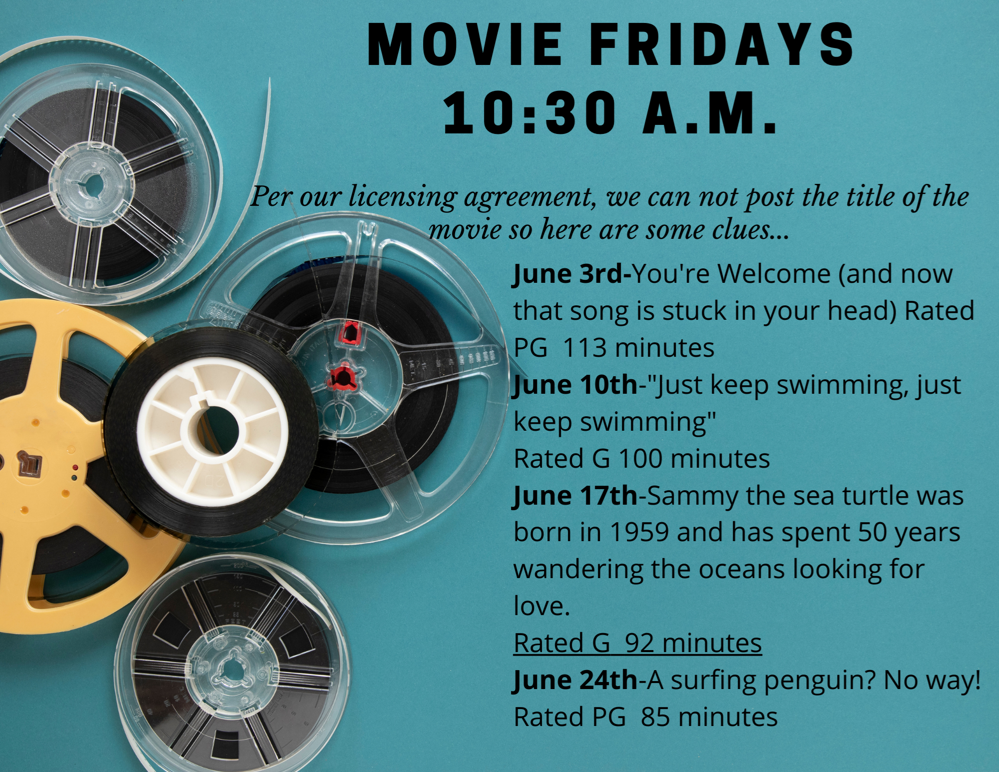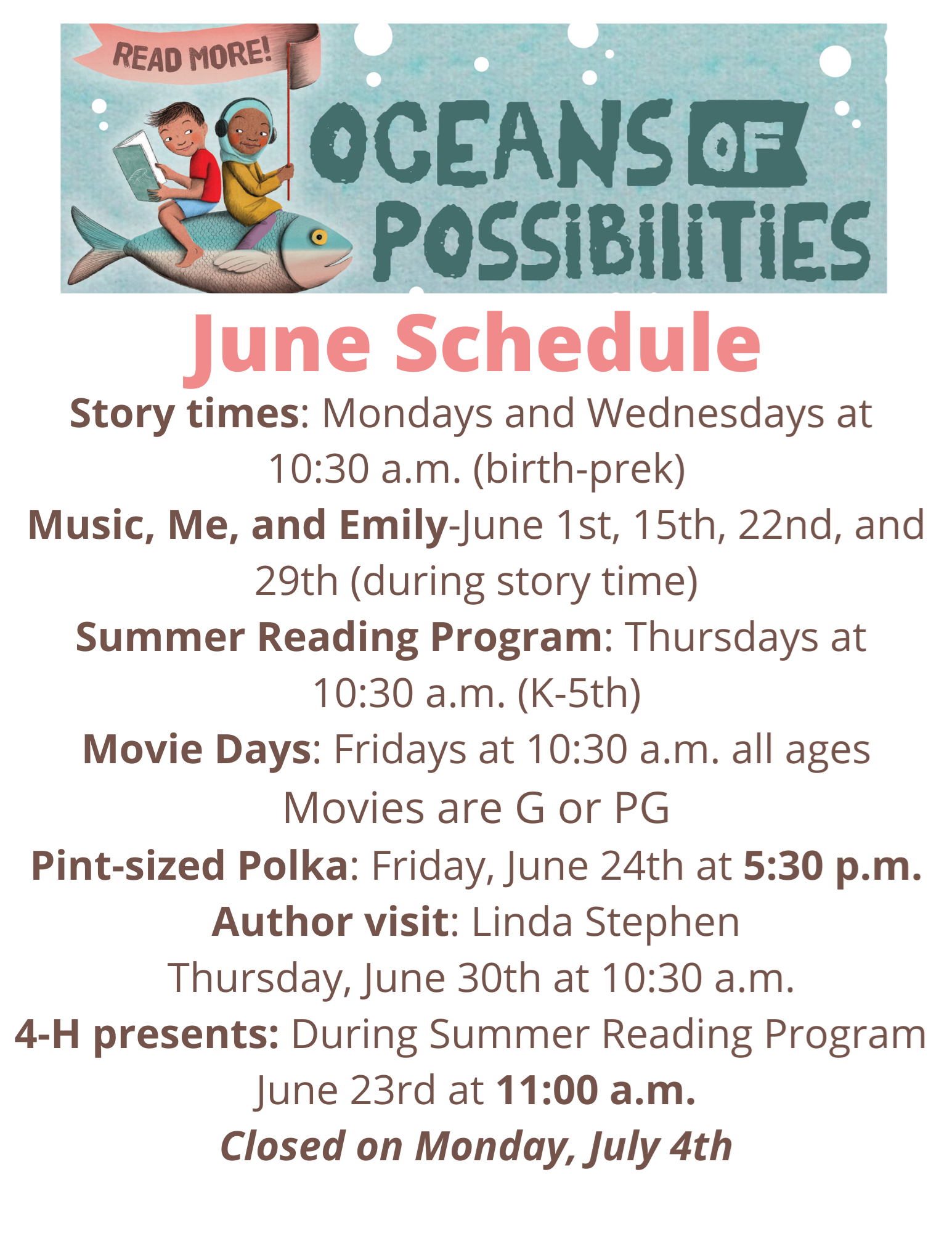 - Story Time Calendar/Summer Reading Program info