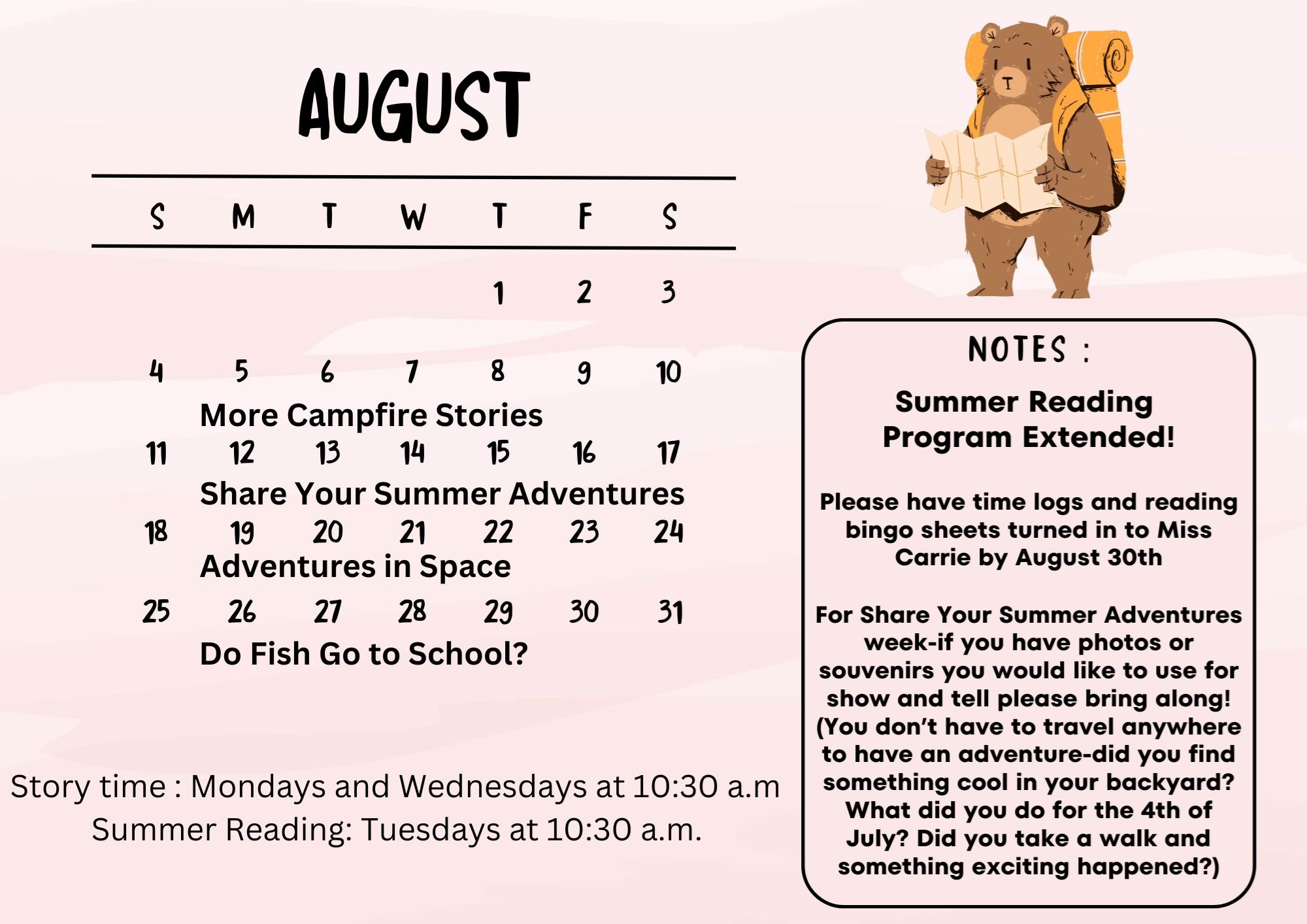 STORY TIME CALENDAR/SUMMER READING PROGRAM