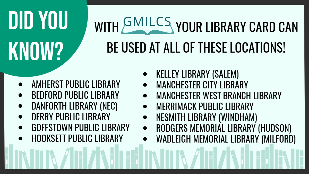 The GMILCS Library Hop is back and includes the Leach Library for the first time! From June 1 - August 31, visit each participating library in the GMILCS Consortium, complete a unique challenge at each library, and earn prizes along the way. To get started, stop by your home library to pick up a game board. On your game board, you’ll find each library’s information and challenges. After you complete a challenge, show it to a library staff member to receive a stamp or sticker on your game board and earn a prize. Once you have completed all of the challenges, present your completed game board to your home library to be entered into a raffle for a $100 gift card to The Bookery in Manchester, NH. The grand prize will be drawn at the end of the Library Hop, and the winner will be notified by their home library. We can’t wait to see you this summer!