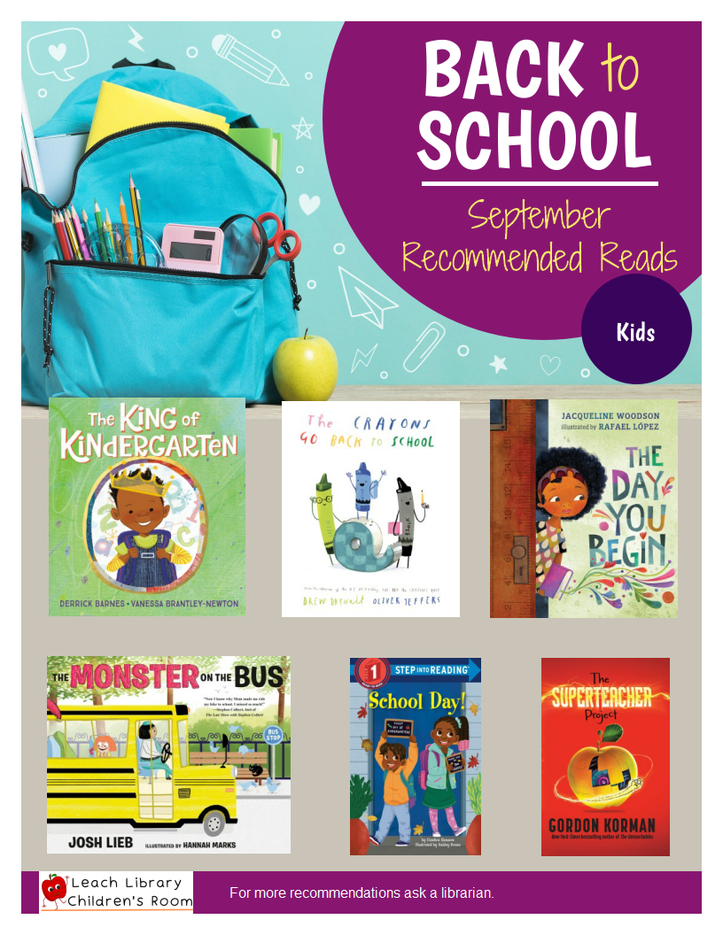 Book Bingo The Leach Library will be offering children’s Book Bingo on Wednesday, September 27 at 4:30 p.m. Everyone will have the chance to win at least one book of their choosing.