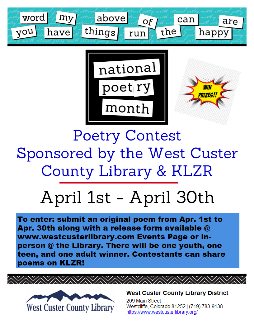 Submit an original poem for a chance to win a prize and read your poem on KLZR!