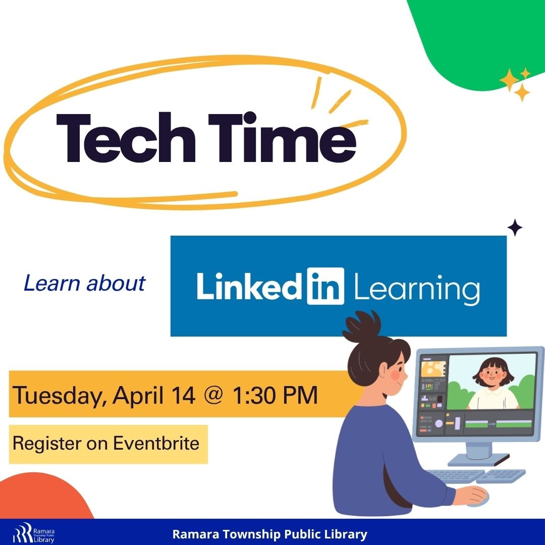 Tech Time Tuesday, April 14 1:30 PM - 2:30 PM Ramara Centre RSVP Your library card gives you free access to LinkedIn Learning! Find out how to log in, search for courses, and more at our next Tech Time!
