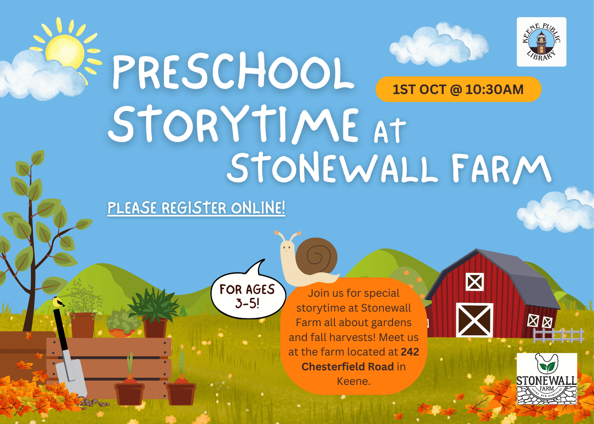 Ms. Scout will read some stories about gardening and harvests and then we will visit the Stonewall Farm garden to see what yummy vegetables they are harvesting for autumn meals.