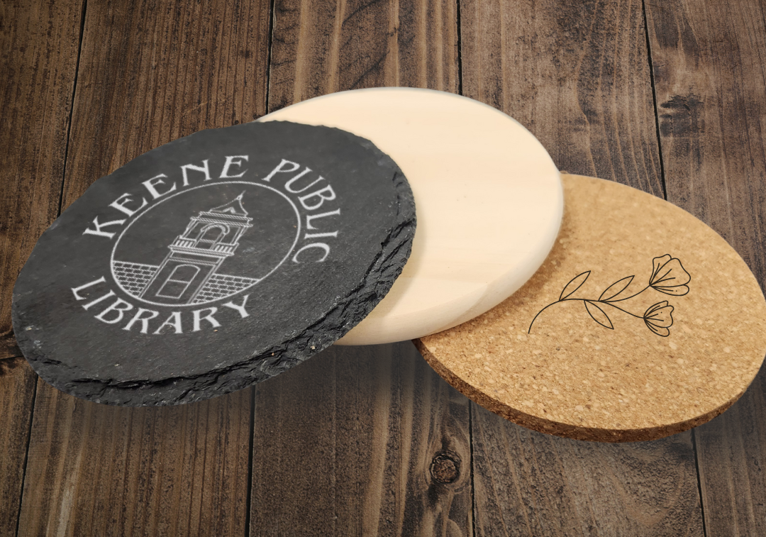 Come use our epilog laser engraver and learn how to make custom designed coasters out of either wood, cork or slate. Each participant will leave with 4 coasters. They make great holiday gifts!