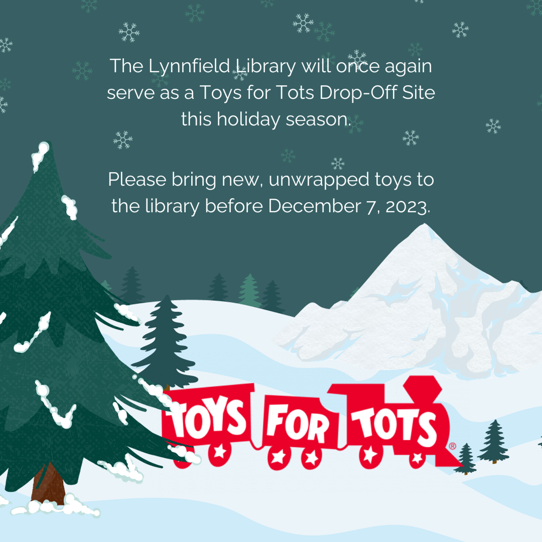 The Lynnfield Library will once again serve as a Toys for Tots Drop-Off Site this holiday season. Please bring new, unwrapped toys to the library before December 7, 2023. |