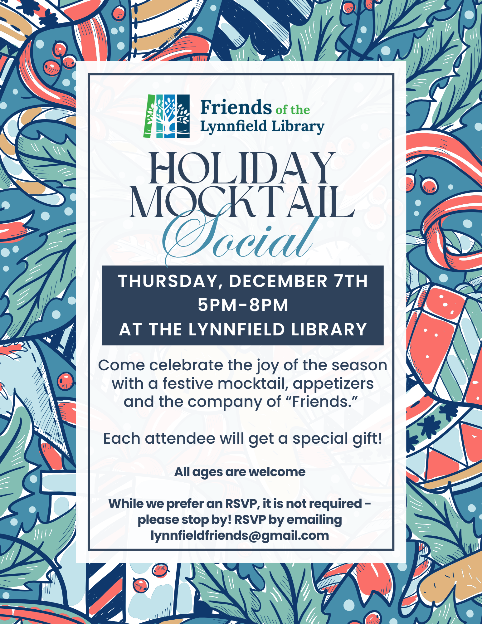 Holiday Mocktail Reception Thursday, December 7th 5 PM - 8PM at the Lynnfield Library