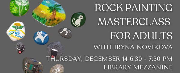 Come join us, as Iryna Novikova teaches a masterclass on rock painting. Registration required.