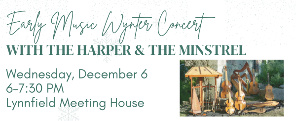 Kick off the holiday season with a performance of historical music in a uniquely historical venue! At the Lynnfield Meeting House The Harper and the Minstrel, husband and wife duo Jay and Abby Michaels will be performing medieval, renaissance and Celtic music in their Early Wynter Concert. Featuring music on over a dozen instruments including harps, guitars, dulcimers, recorders, flutes, and more, The harper and the minstrel will play carols and winter’s music as you’ve never heard them before. Registration is requested for headcount.