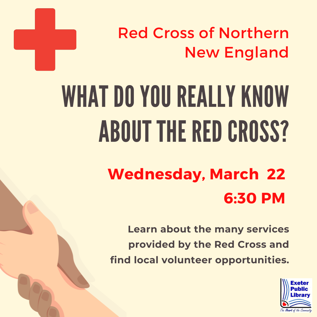 Meet with a representative of the Red Cross of Northern New England to learn about the group and ways to volunteer. No sign-up required. | |