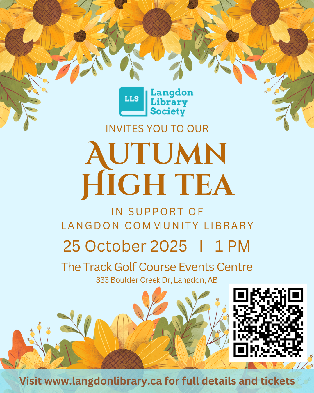 Langdon, AB – September 9, 2025 — The Langdon Library Society warmly invites community members to a charming and elegant Autumn High Tea Fundraiser in support of the Langdon Community Library.