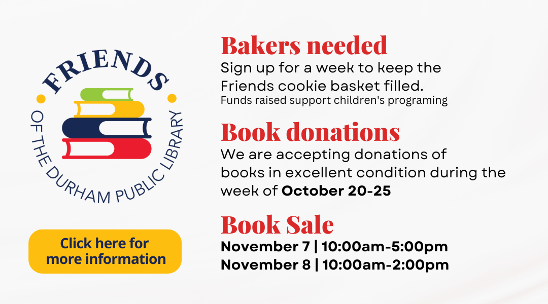 Questions? Call or email us at 603-868-6699 or durhampl@gmail.com |
