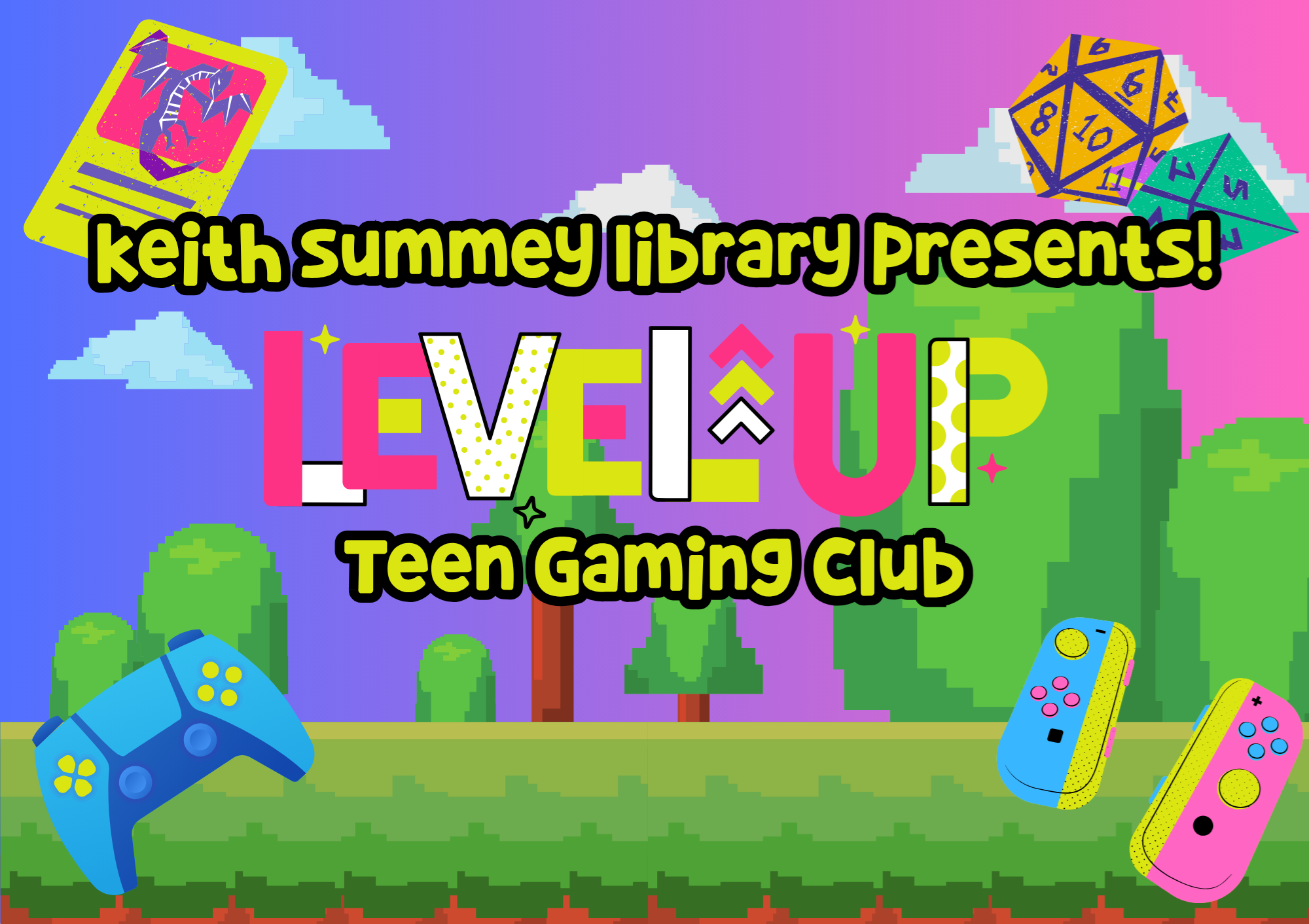 Level Up! Teen Gaming Club Date: Tuesday, March 17 Time: 4:00-5:00PM Description: Gamify your library experience at KSNC's Level Up! Teen Gaming Club. Teens will join their peers for an opportunity to talk about their favorite games and gaming topics. Games can be digital or tabletop, giving all teens a chance to share their passions. Meetings can include teens playing video games, VR games, tabletop games, trivia, and more! For teens in grades 6-12.