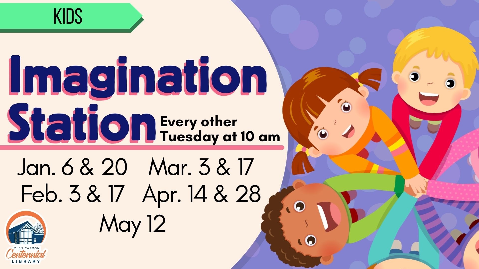Imagination StationPlanned for Ages 3 to 5 Tuesday's Biweekly at 10 am February 3 & 17 Join us for a morning of activity, imagining, creating, and fun! The last Imagination Station each month is a Dance Party with instruments and parachute play. Drop In