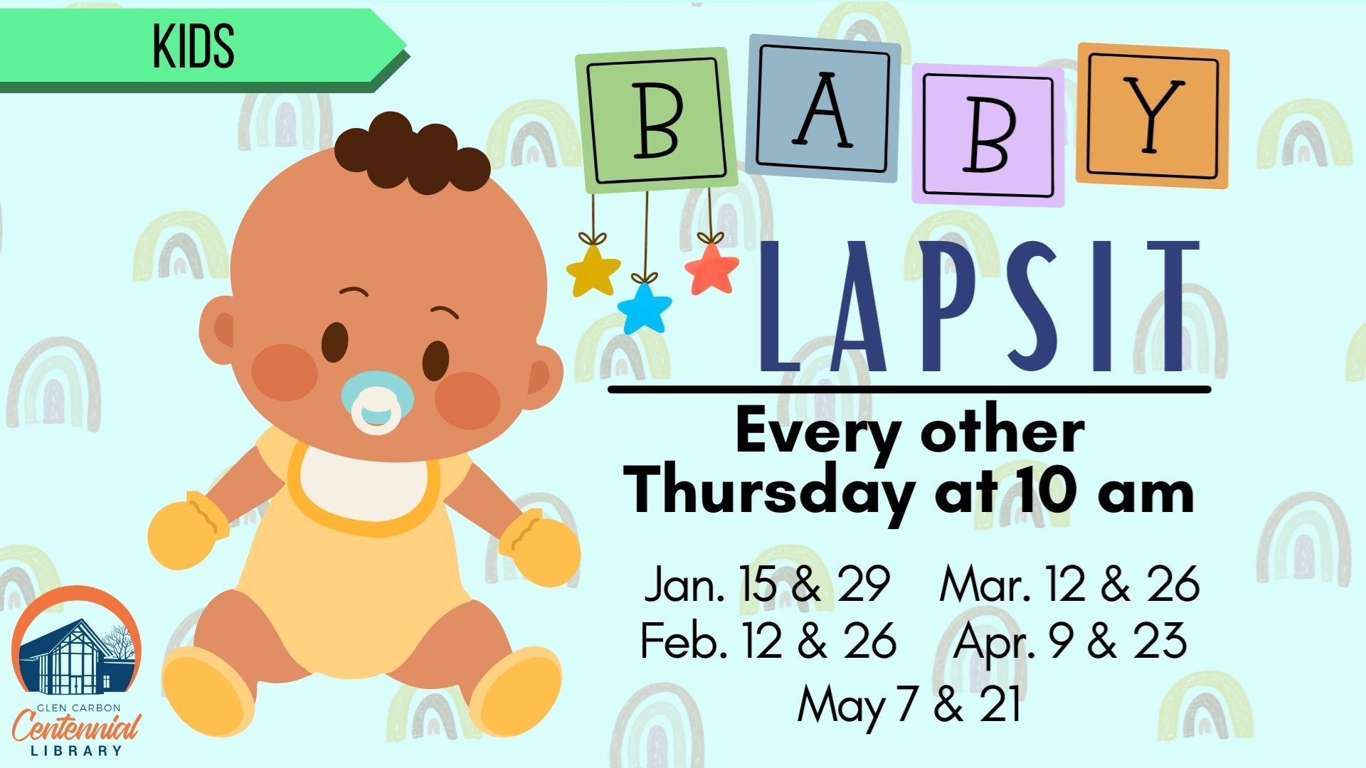 Baby Lapsit Planned for Ages Birth to 2 Thursdays Biweekly at 10 am February 12 & 26 Build your baby’s literacy foundation with skills, stories, and songs in a 15-20-minute session. Playtime follows to help with social skill development. Drop In