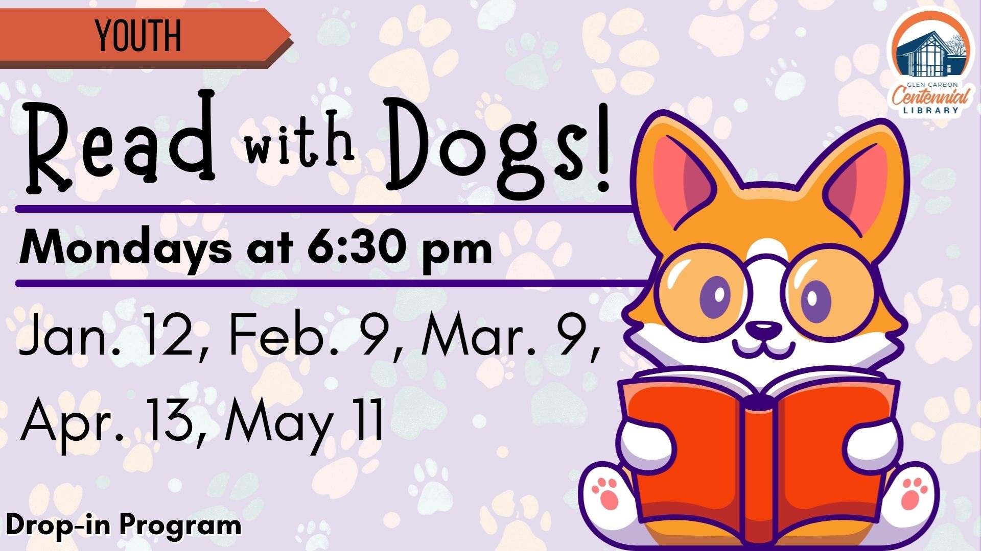 Read with Dogs 2nd Monday Once a Month at 6:30 pm February 9 Sit with licensed therapy dogs, and read a story of your choosing! You’ll have 15 minutes to read and pet a loveable dog! There will be two dogs. Drop In