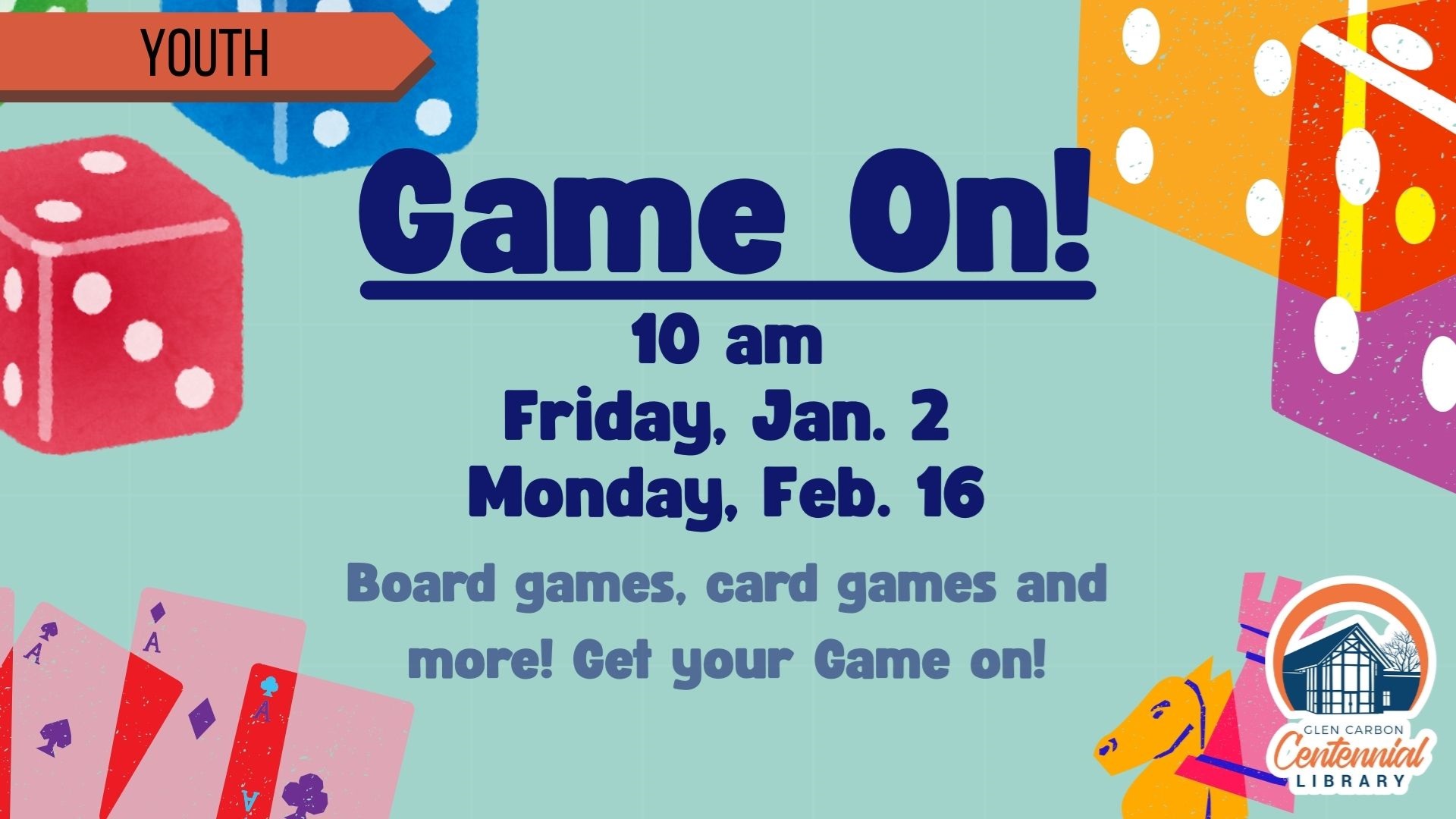 .  Monday, Feb. 16 at 10 am Board games, card games and more - get your game on at the library! Learn to play your Reading Dragon cards against your friends! Drop In