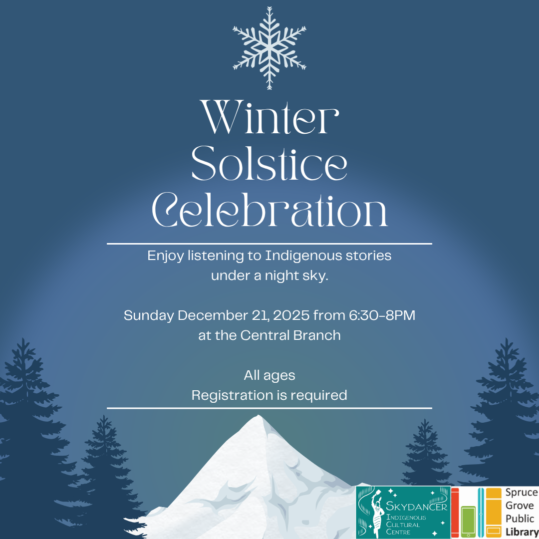 We acknowledge that Spruce Grove Public Library resides on Treaty 6 Territory of Turtle Island now known as Canada. We express gratitude and respect for the land we use with the pledge that this organization will actively work to end systemic racism, continue to participate in truth and reconciliation, and partner with our neighbouring First Nations (Paul Band, Michel, Alexander, Alexis Nakota Sioux, Enoch, and Lac Ste Anne Métis District #8) to improve Indigenous programming, services, and resources in our communities.