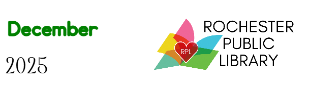 Speaking of the book sale, it's the best deal in town for great holiday gifts! Check out the fiction and nonfiction books we have for sale (usually for $1 or $2) or the many DVDs (usually $1) and CDs (50 cents each) available. But wait, there's myrrh! The best gift of all might be a Rochester Public Library tote bag for the library lover in your life. Each bag is only $3 — ideal for carrying all of the new books ready to be checked out, and to cart around your daily December treat. So ride your sleigh over to the first floor soon to experience the joy of the holidays with your merry friends at RPL! |