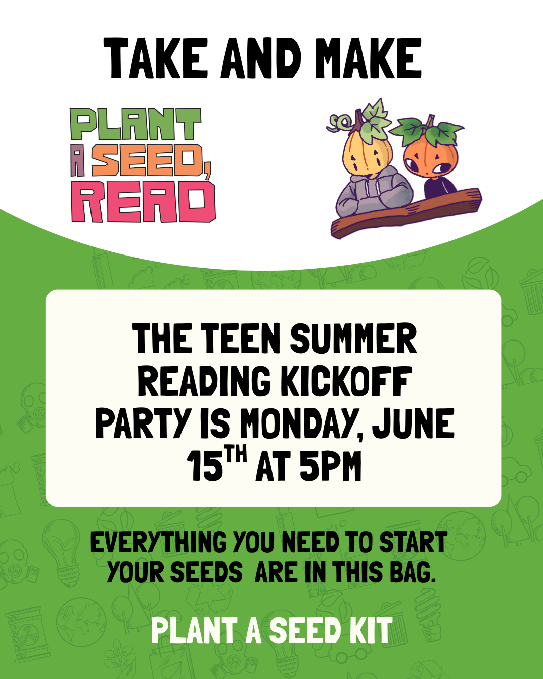 Start your plant inside and transplant it outside over the summer. The Summer Reading Kickoff Party is Monday, June 15th. Drop in between 5pm & 6:30pm |