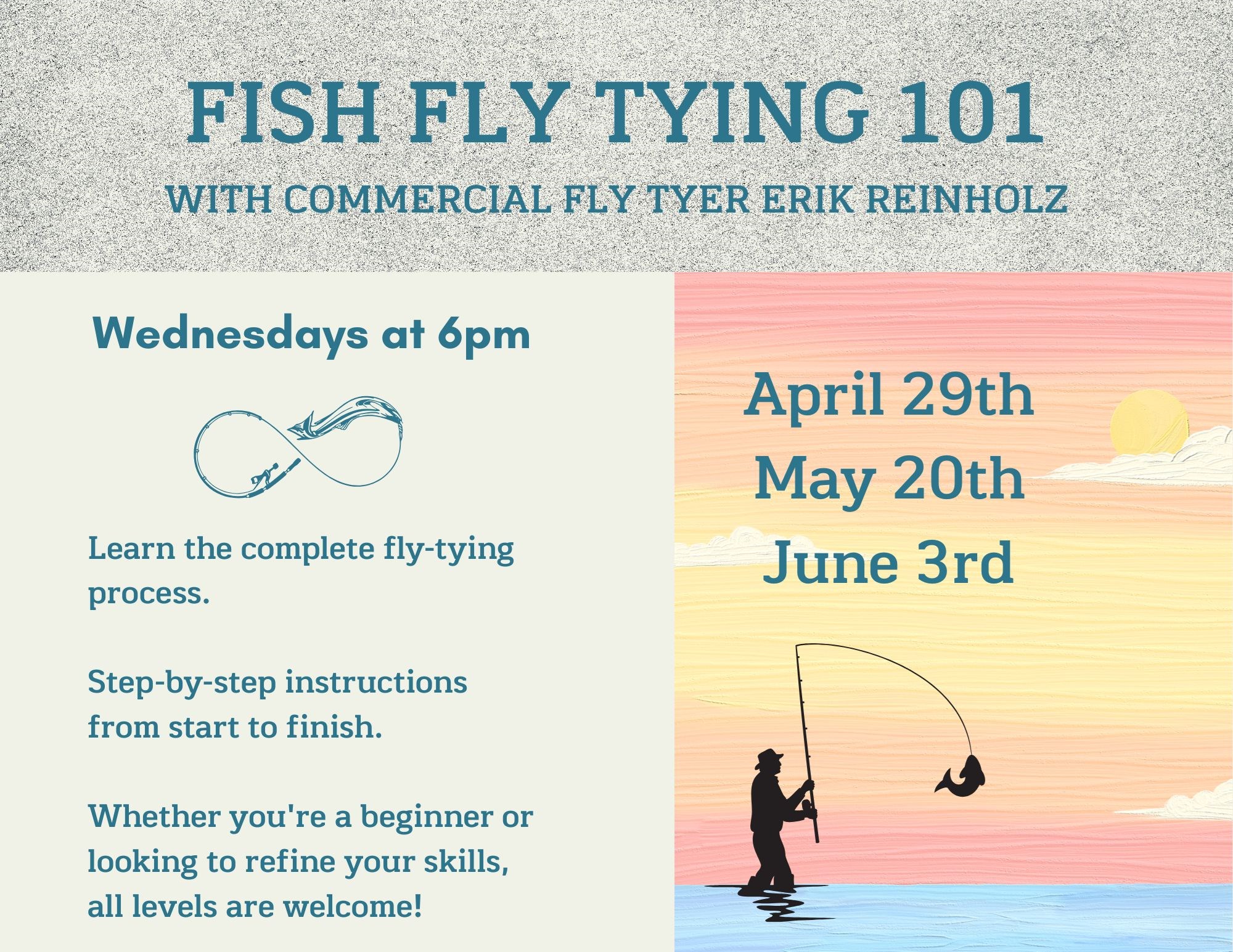 If you've always wanted to master the art of tying your own flies, now is the perfect opportunity. Join commercial fly tyer Erik Reinholz as he guides you through the complete fly-tying process, providing step-by-step instructions from start to finish. Whether you're a beginner or looking to refine your skills, all levels are welcome! |