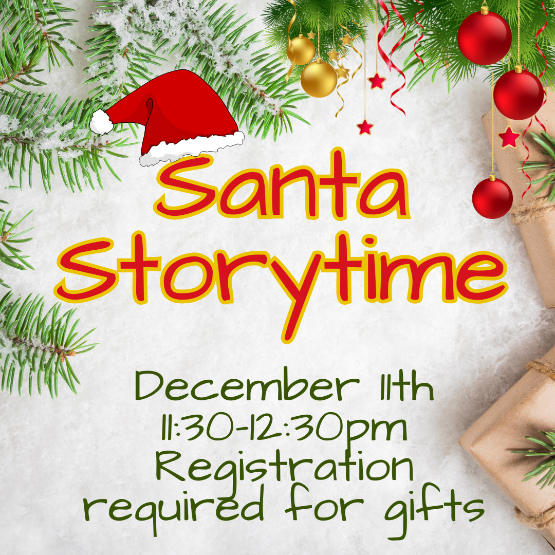 Santa Storytime. December 11th 11:30-12:30pm. Registration Required. Little Legends is a magical world of words and wonder! Our interactive story times are designed for little bookworms aged 0-5, where we will explore enchanting stories, rhymes, and creative crafts! Through stories we will spark imagination, foster language skills and create a lifelong love for reading. Come and join the adventure, where stories come alive and friendships are made. Join us for a special story time with Santa Wednesday, December 11th, 11:30am-12:30pm. Please register on the link provided by December 2nd: https://forms.gle/fsHFefikvkJ4xEfT6