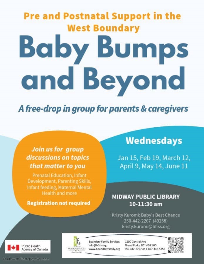 Baby Bumps and Beyond Wednesday, May 14th,9:30-11:00 am Parents/Guardians of children 0-6 welcome! Join us for group discussions on topics that matter to you. Prenatal education, infant development, parenting skills, infant feeding, maternal mental health and more!