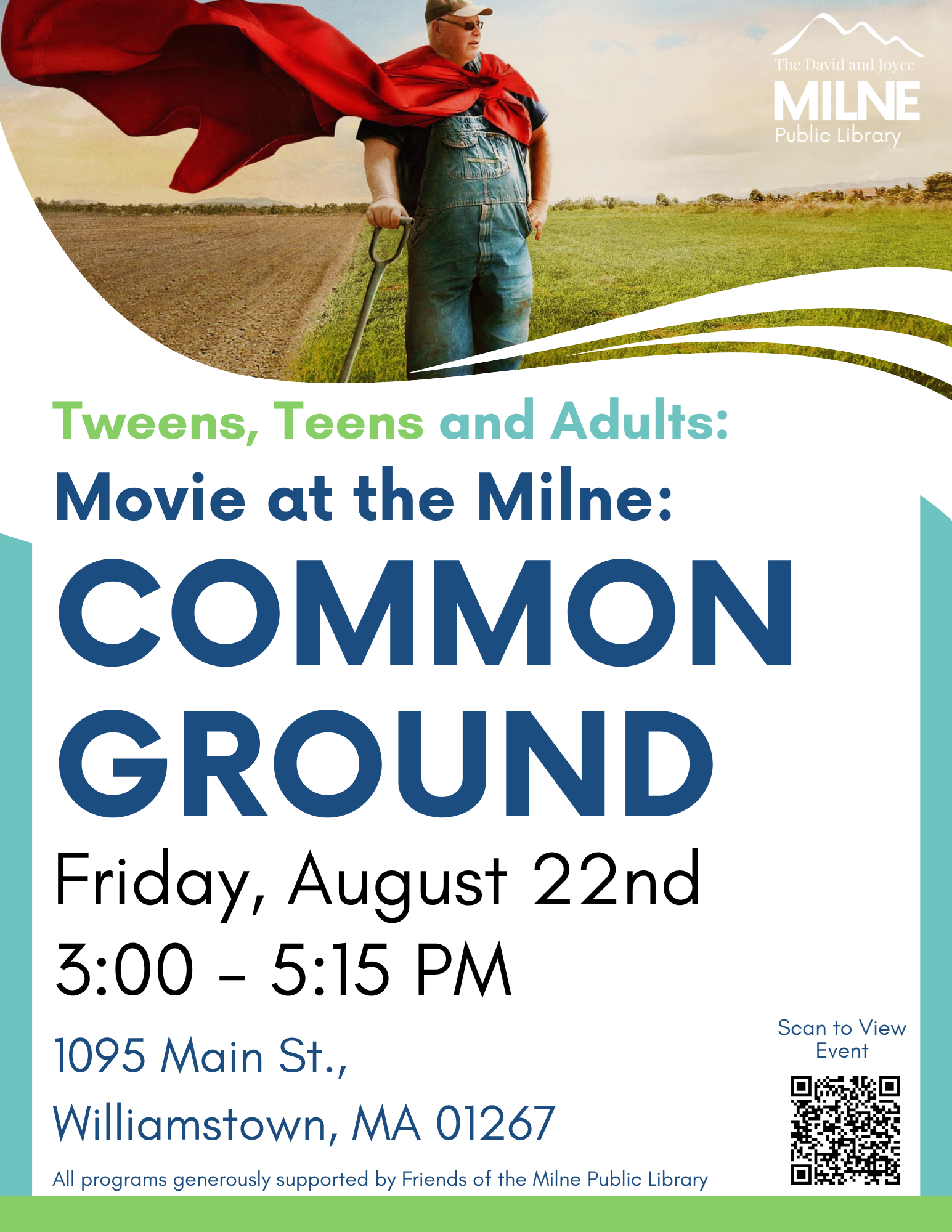 | | Join us Friday, August 22nd at 3:00 p.m. for a showing of Common Ground!