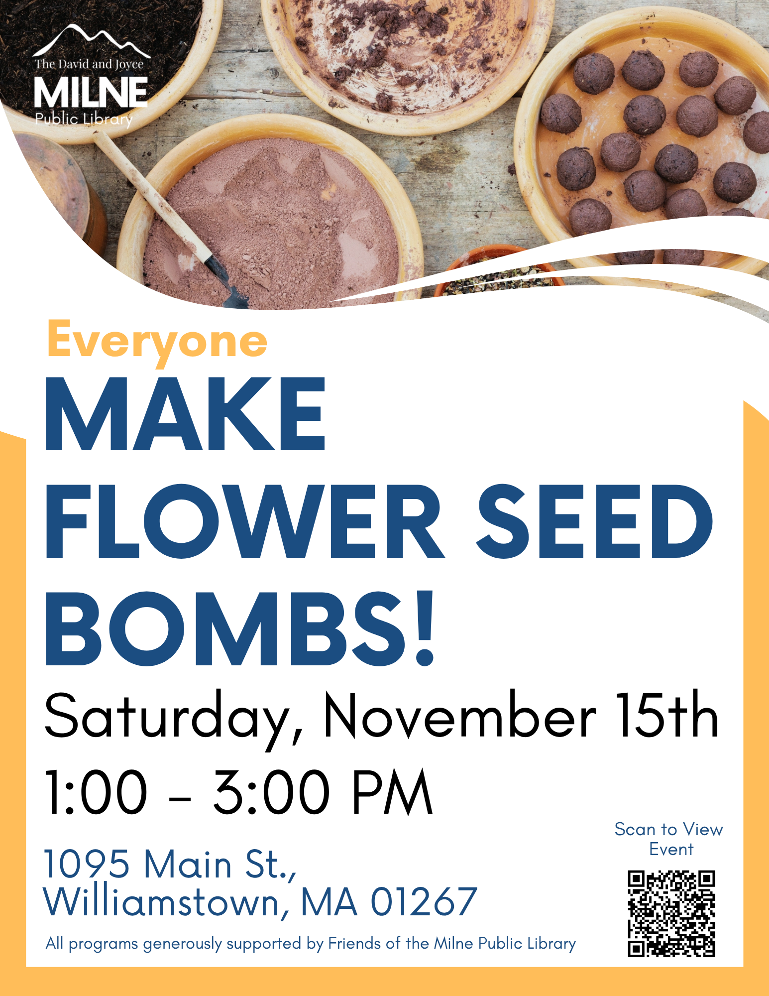 Brighten up your garden with home-made flower seed bombs Saturday, November 15th at 1:00 p.m.
