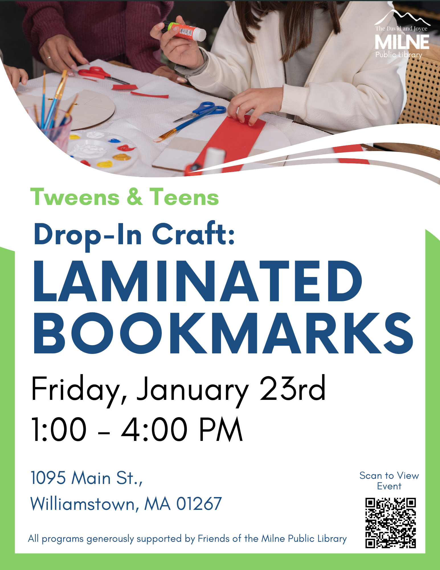 Join us for an afternoon of arts & crafts Friday. January 23rd, 1:00 - 4:00 p.m.