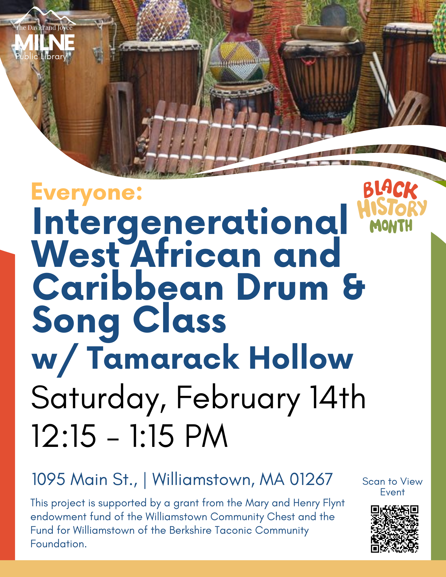 | Intergenerational Drum & Song Class w/ Tamarack Hollow | Saturday, February 14th 12:15 p.m. - 1:15 p.m. |