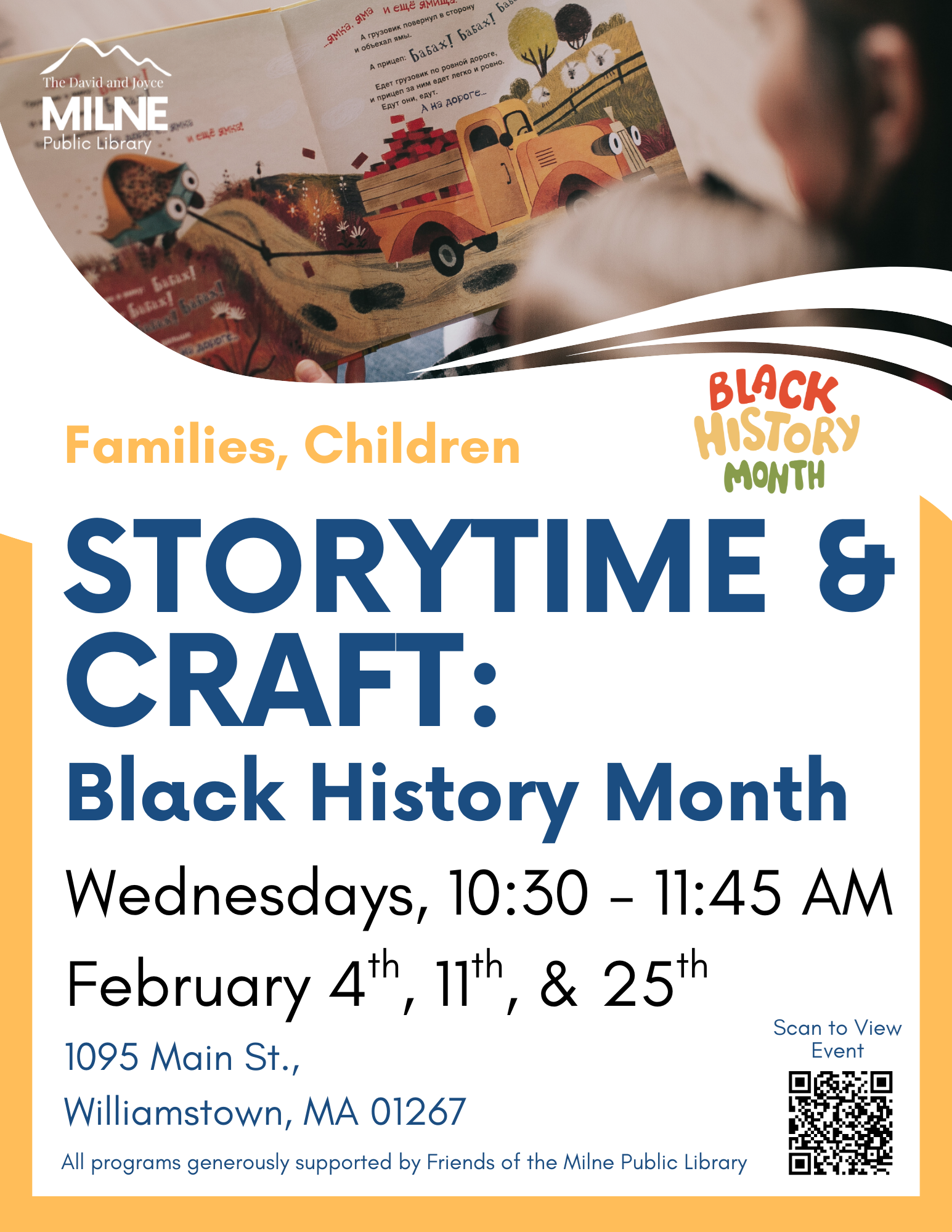 Special February Storytimes | In honor of Black History Month, we will be featuring books by Black authors and focusing on joy, discovery, and innovation.