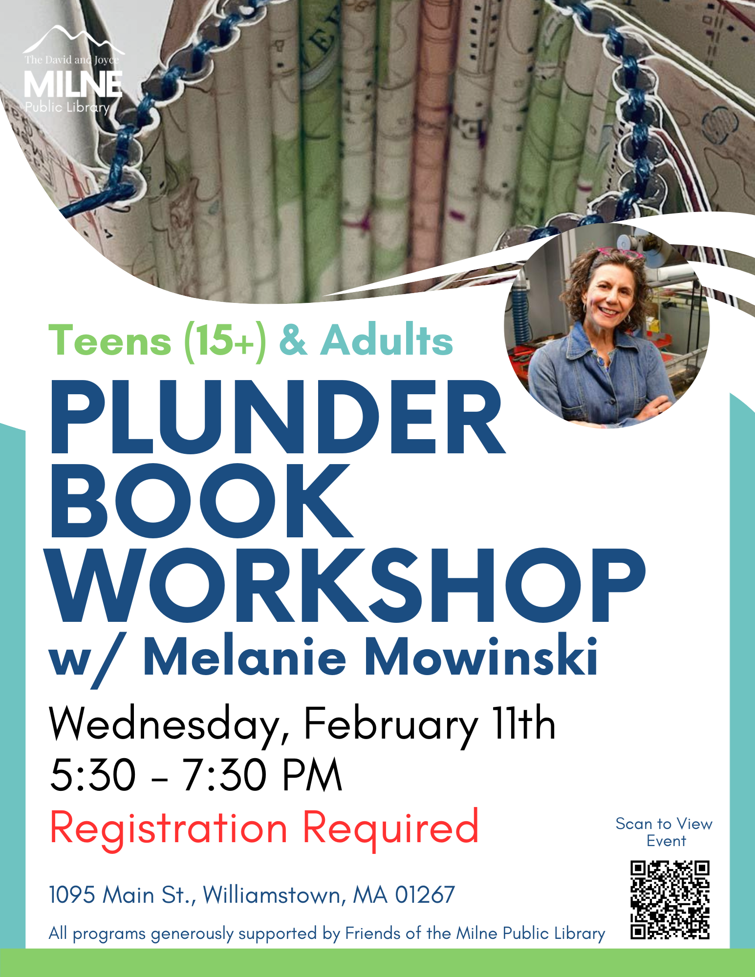 | Plunder Book Workshop w/ Melanie Mowinski | Wednesday, February 11th 5:30 p.m. - 7:30 p.m. Registration Required |
