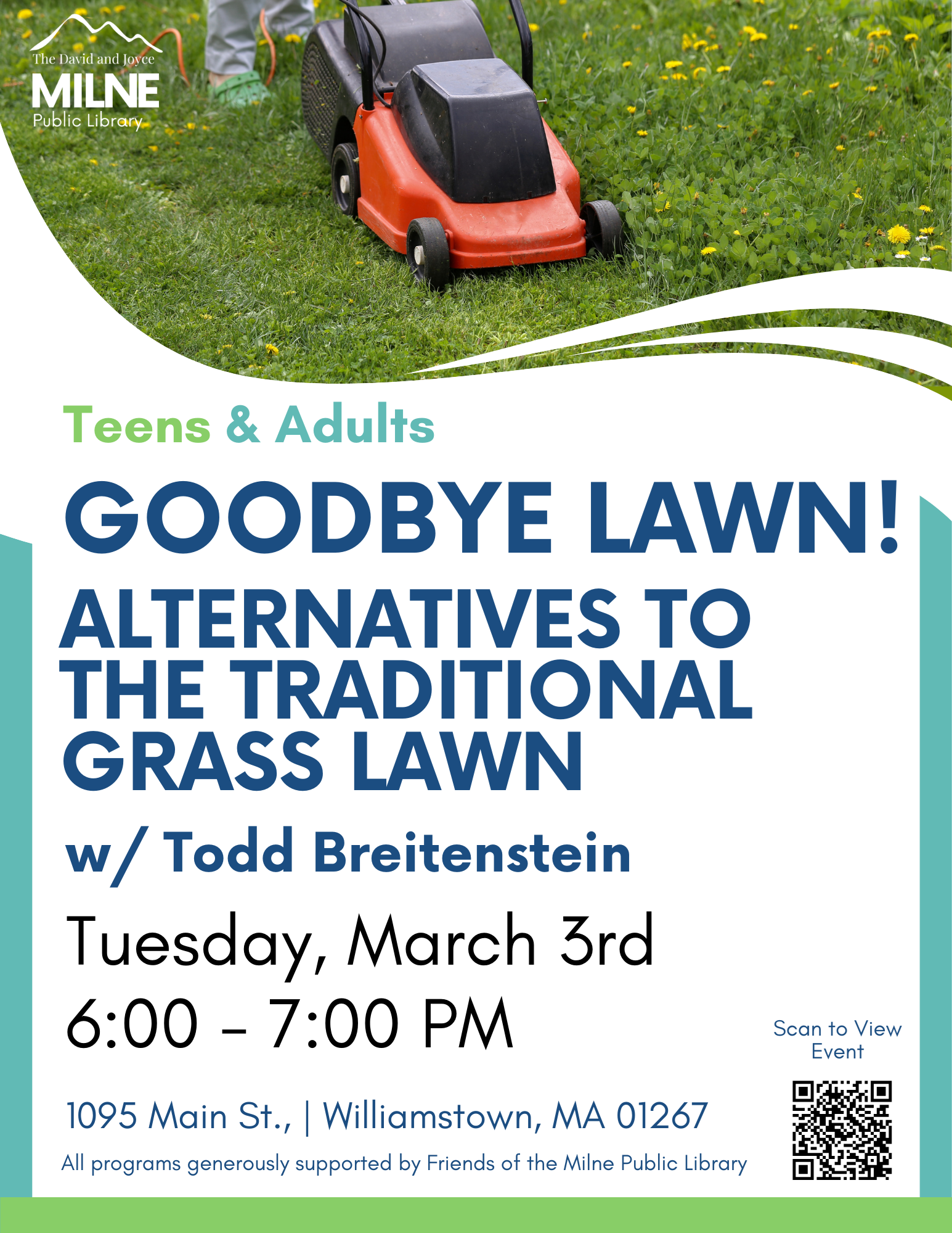 Join us Tuesday, March 3rd at 6:00 p.m. for an enlightening talk where we'll explore innovative alternatives to traditional grassy lawns for a more sustainable and visually appealing landscaping experience.