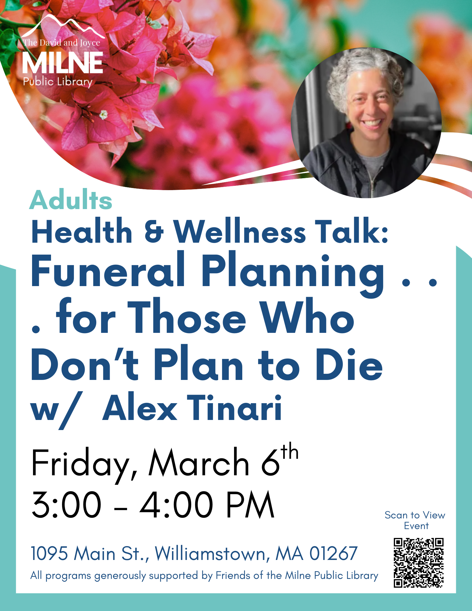 Whether you know your expiration date or feel certain you'll never die, join us Friday, March 6th at 3:00 p.m. to get your questions answered about planning your funeral in this informative - and sometimes humorous - presentation.