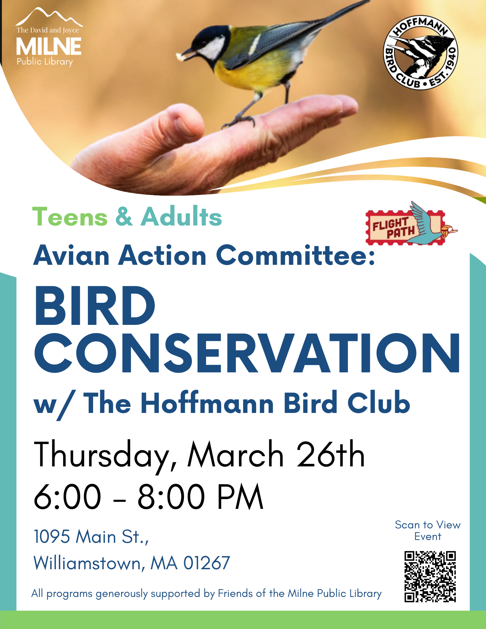 | Join Audrey Werner and Zach Adams from the Hoffmann Bird Club Thursday, March 26th at 6:00 p.m.