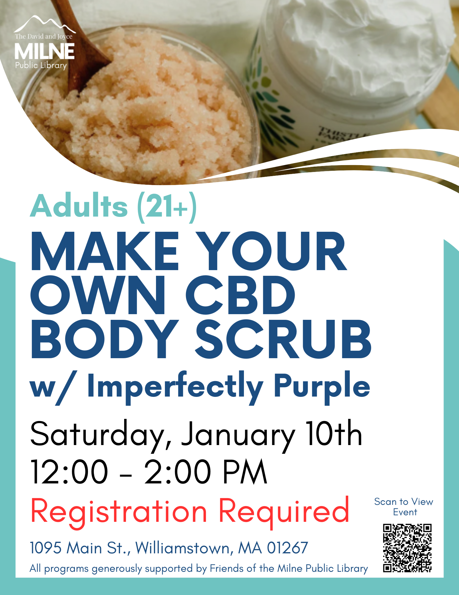 Bekki will guide you through a craft where you learn to make your own body scrub that includes CBD and its benefits to you. This event is for adults ages 21 and up.