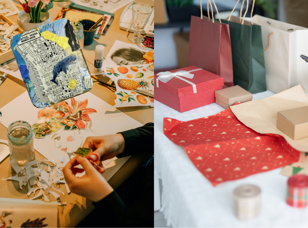 Tomorrow, Saturday, December 13th, get into the holiday spirit by making collaged coasters, 12:00 - 3:00 p.m., and attending our festive gift wrapping party at 12:30 - 3:30 p.m.