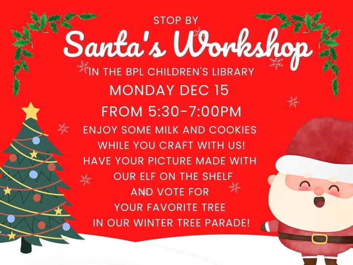 This month, the BPL Book Club is excited to host a Christmas Party Potluck on Tuesday, December 9, in the J. Henry Kegley Meeting Room. Join us as we share and discuss our favorite books from 2025! |