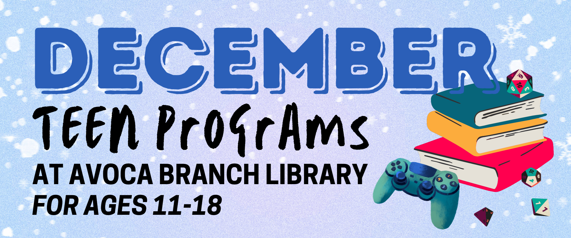The Friends of Avoca Library will hold their December meeting on Saturday, December 13 at 11:30 am at Mad Greek on Volunteer Parkway. Come enjoy some holiday spirit and fun.