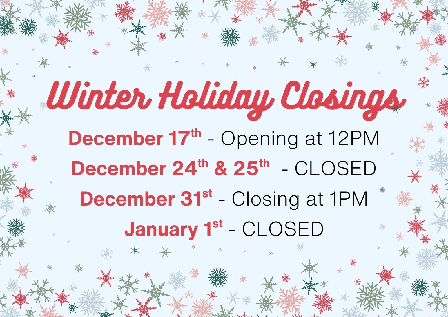 Our weekly programming will be on pause for school vacation from 12/22 to 12/31. We'll be back and ready to welcome you in the new year - see you then!
