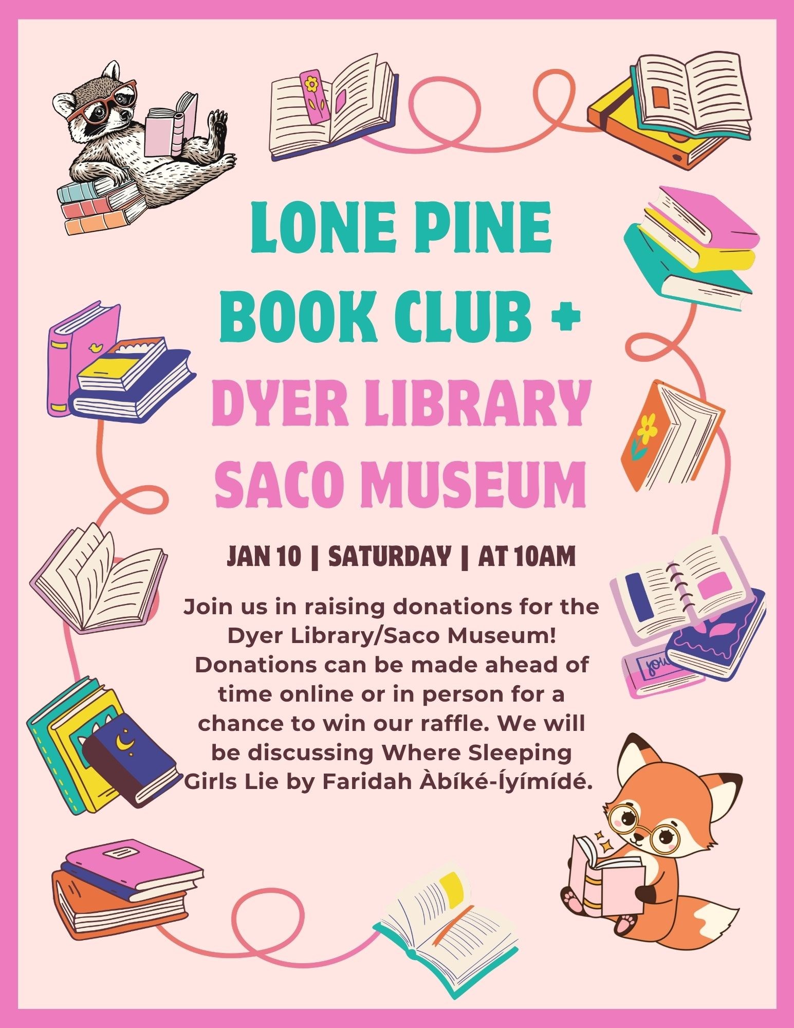 Why not try joining a new book group in the New Year? Lone Pine Book Club will be hosting it's January meeting at Dyer Library on the 10th and all are welcome! Please visit their Instagram account here for more information, or email lonepinebookclub@gmail.com. |