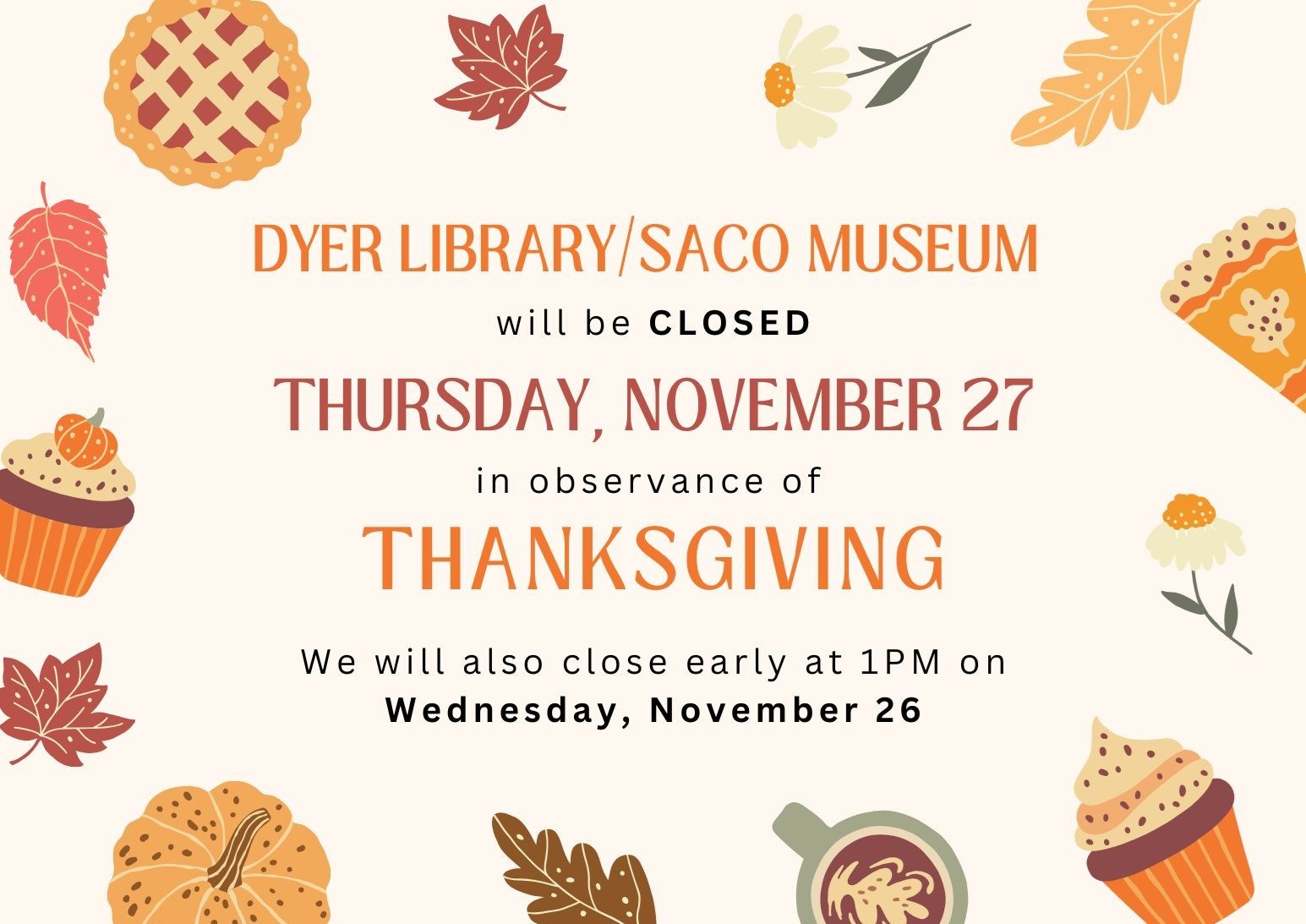 This month we’ll be hosting a food drive to benefit Youth Full Maine, an organization that combats food insecurity in York County. Beginning this Saturday, November 1st, please drop off donations in the main Circulation area and Children’s Room at Dyer Library – please note the list of most needed items! We’ll collect until Saturday, November 15th.